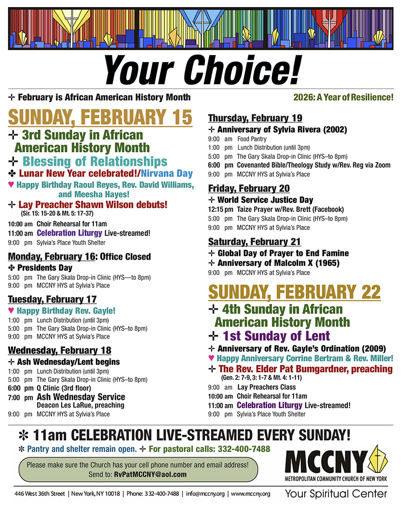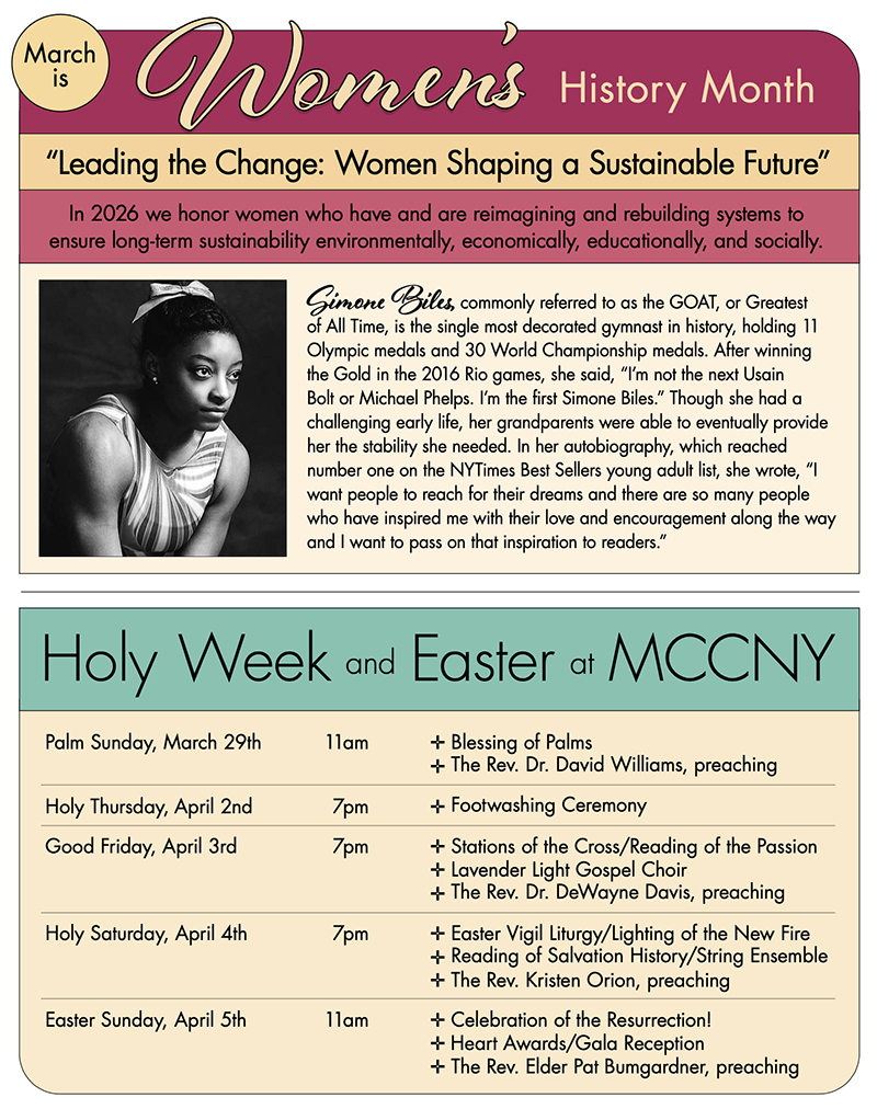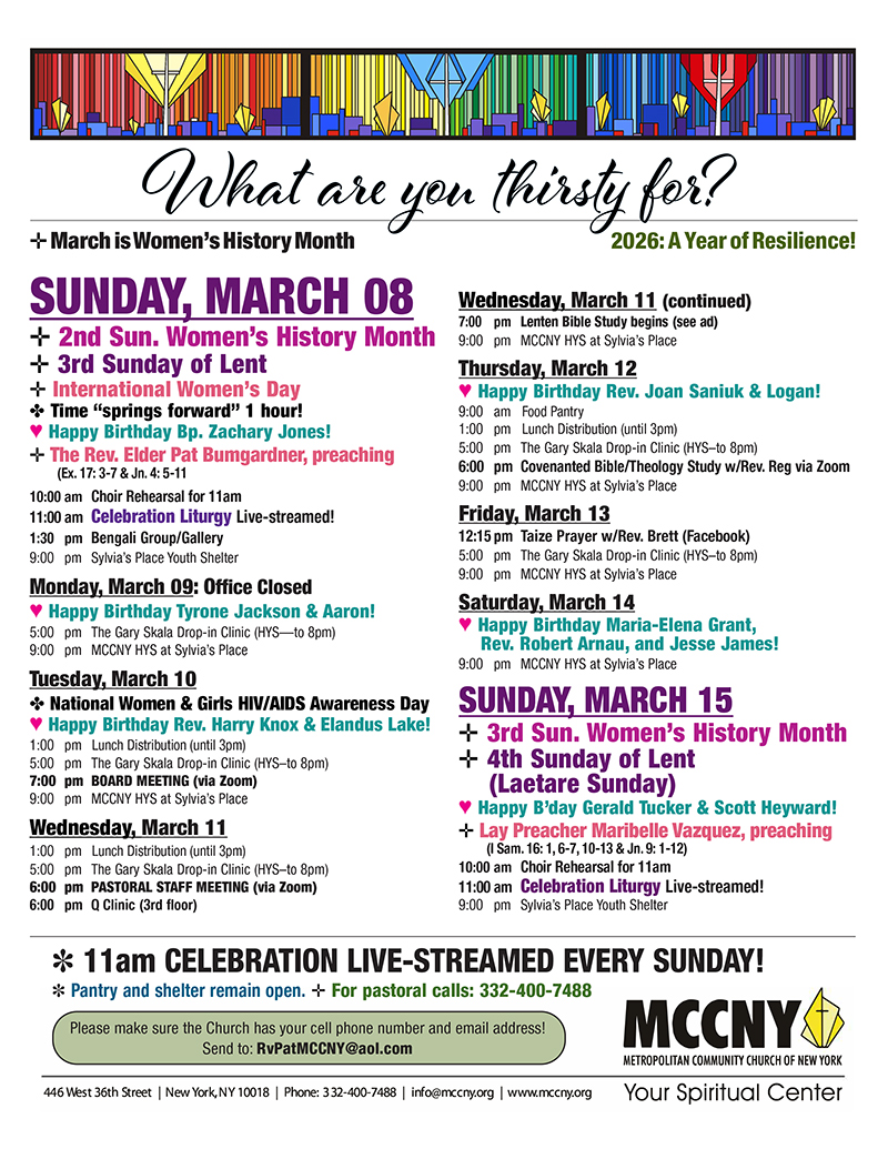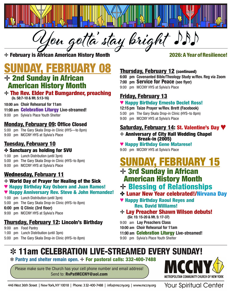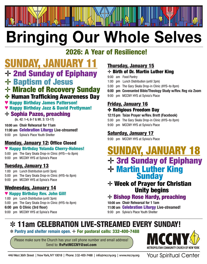 MCCNY is located in Manhattan at 446 W. 36th St. beteewn 9th and 10th avenues, just a few blocks from Pennsylvania Station and the Port Authority Bus Terminal.