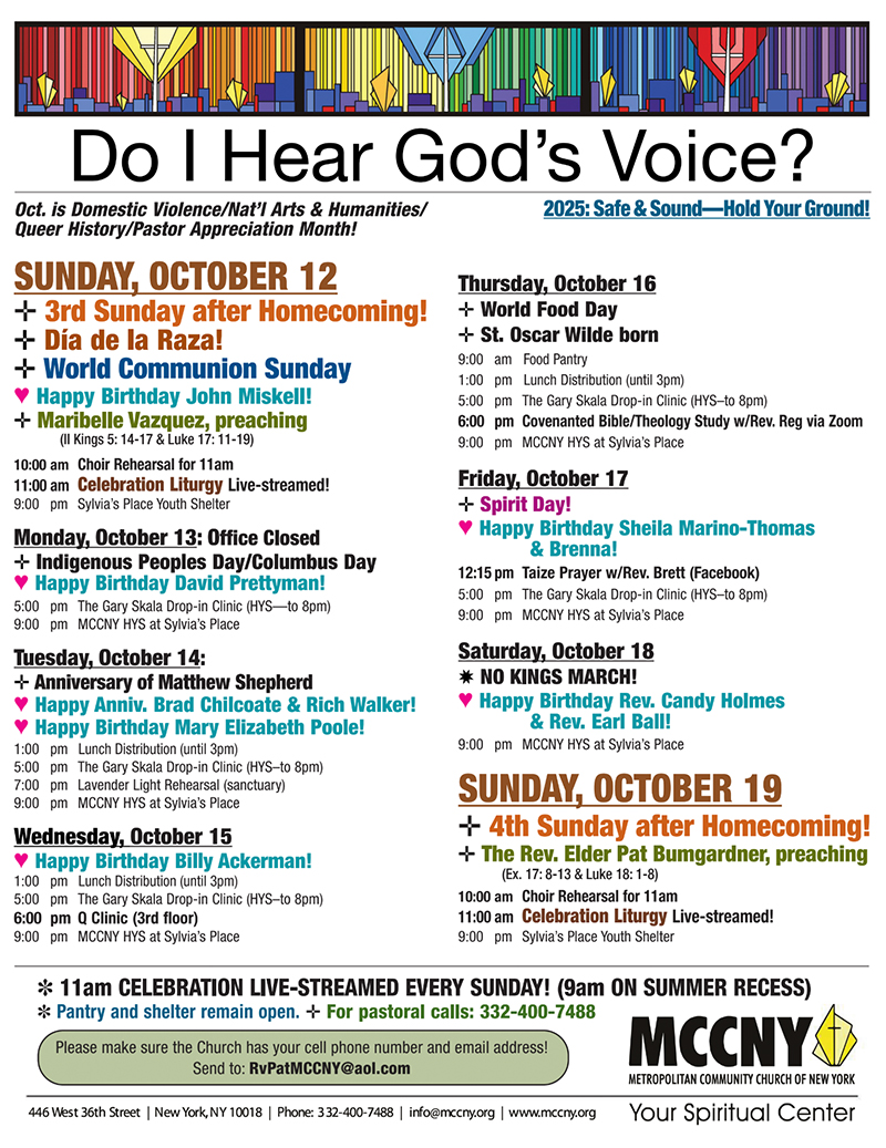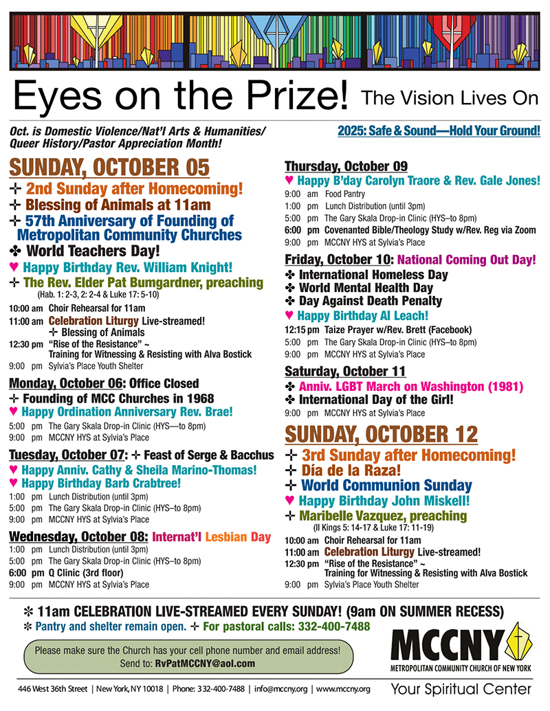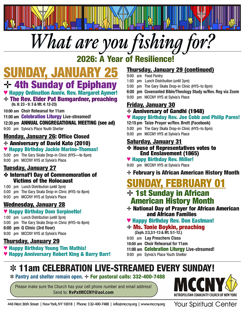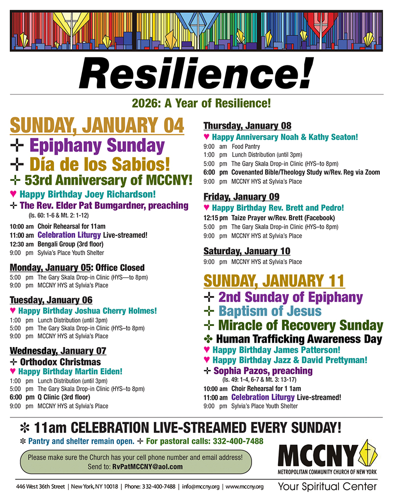 MCCNY is located in Manhattan at 446 W. 36th St. beteewn 9th and 10th avenues, just a few blocks from Pennsylvania Station and the Port Authority Bus Terminal.