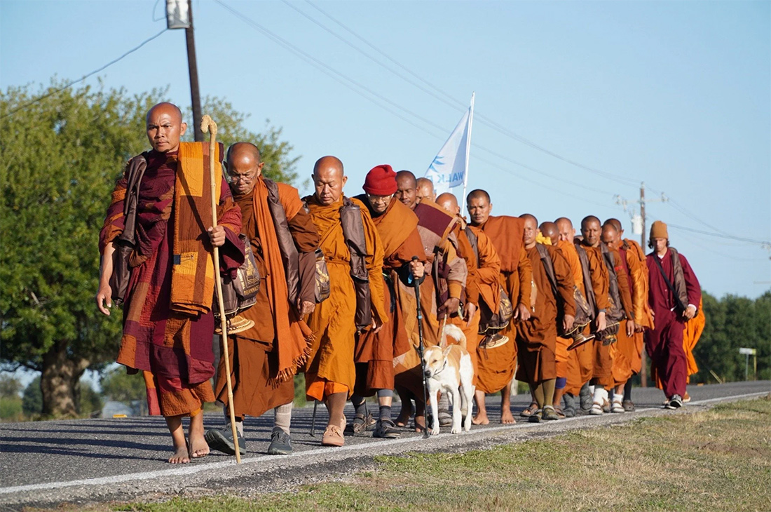 Buddhist monks are walking across America, from Texas to Washington D.C., as a "Walk for Peace" to raise awareness for peace, loving kindness, and compassion,