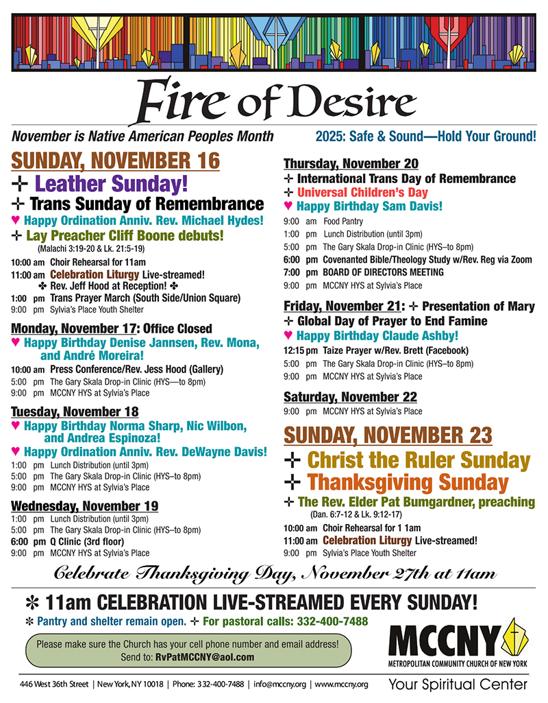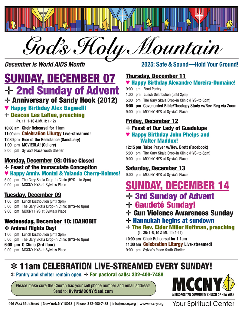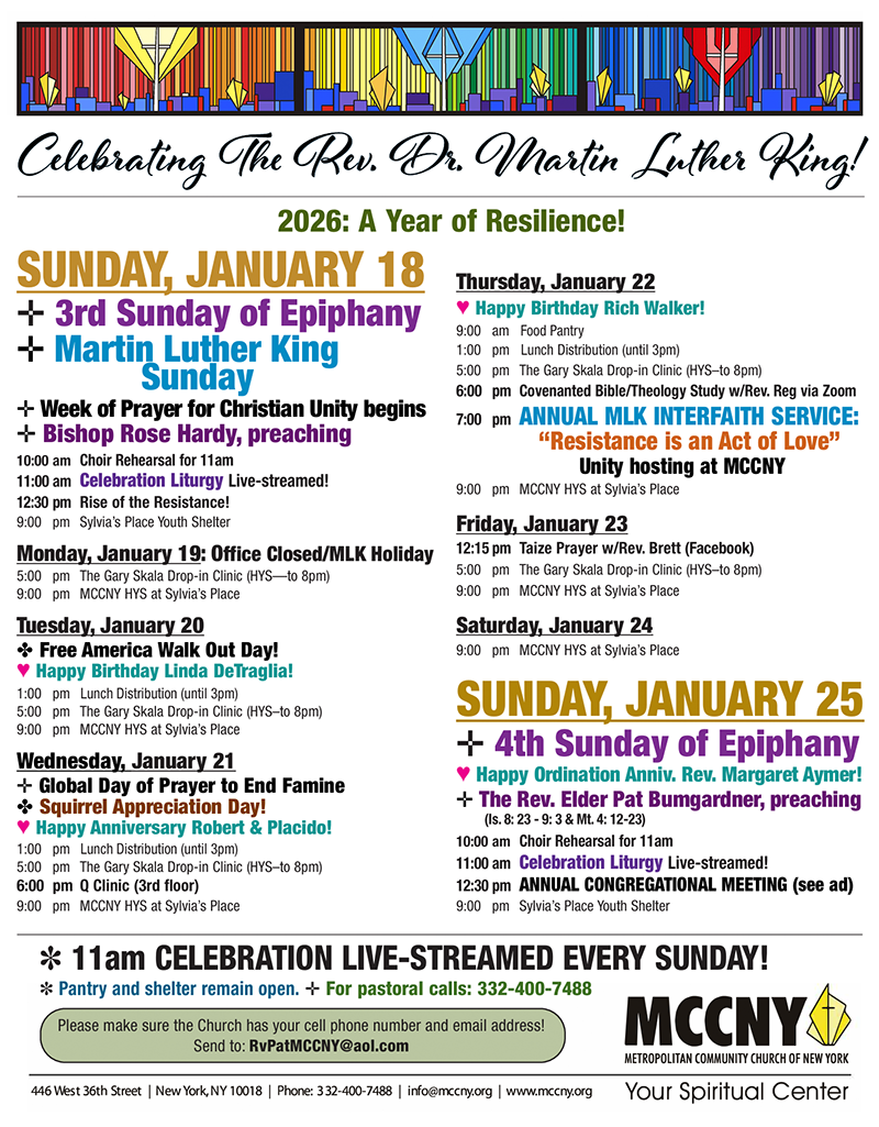 MCCNY is located in Manhattan at 446 W. 36th St. beteewn 9th and 10th avenues, just a few blocks from Pennsylvania Station and the Port Authority Bus Terminal.